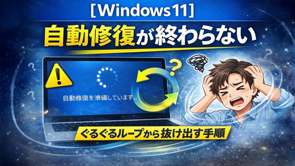 【Windows11】自動修復が終わらない原因と対処法 ぐるぐるループから抜け出す手順