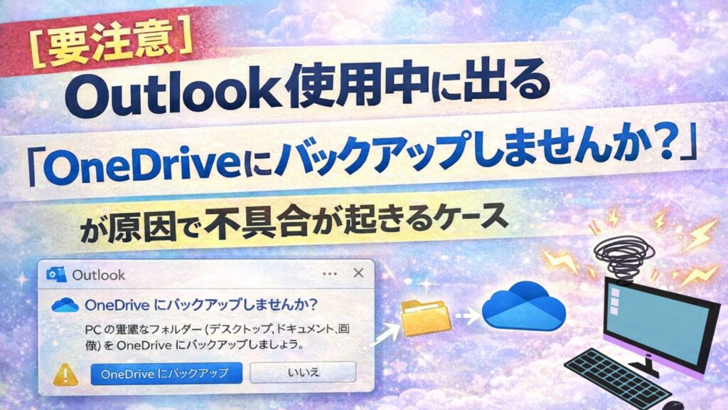 【要注意】Outlook使用中に出る「OneDriveにバックアップしませんか?」が原因で不具合が起きるケース