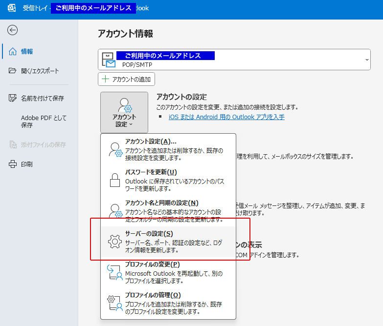 アカウント設定(受信・送信サーバー情報)を見直す